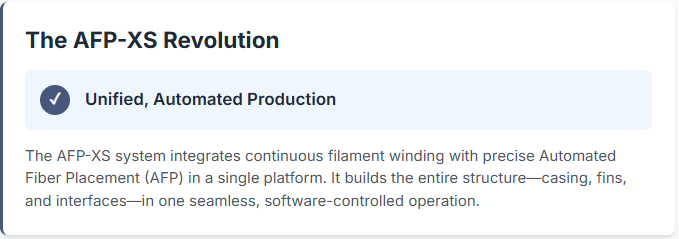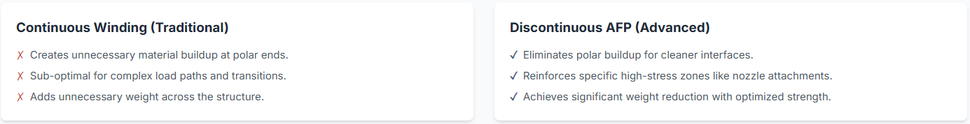 The true revolution lies in the system's ability to seamlessly transition between manufacturing modes through software control alone. Continuous filament winding provides maximum strength for primary structural elements, while AFP capability enables precise placement for complex geometries like guide fins, payload interfaces, and transition zones. This unified approach eliminates the traditional bottlenecks where components manufactured separately required complex assembly procedures. The result is not just faster production, but fundamentally better structures with optimized fiber continuity across previously impossible transitions.