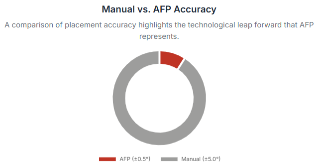 Traditional manufacturing requires a complex chain of discrete operations: ply cutting, kit preparation, manual placement, and separate inspection processes. Each step requires dedicated equipment, operators, and floor space. AFP technology consolidates these into a single streamlined operation. Pre-slit tapes eliminate the need for ply cutting equipment entirely, while the programmed placement removes the requirement for kit preparation and storage.